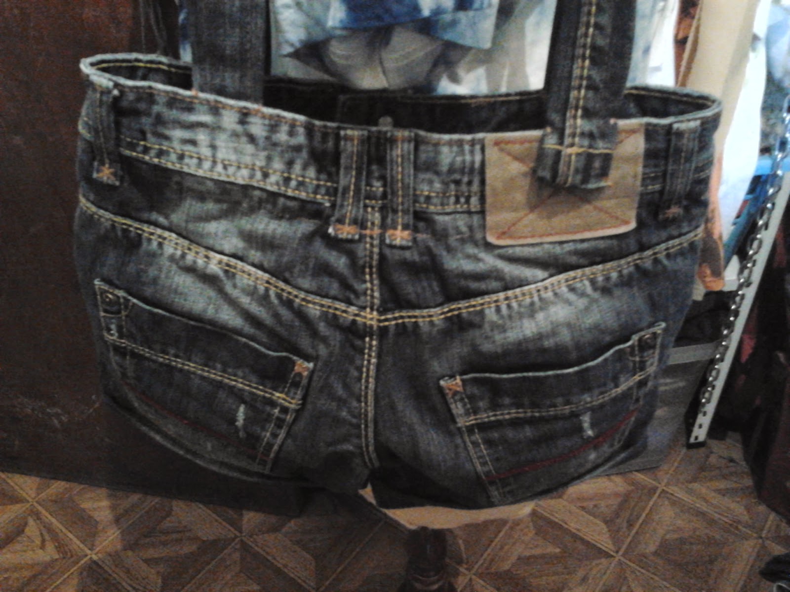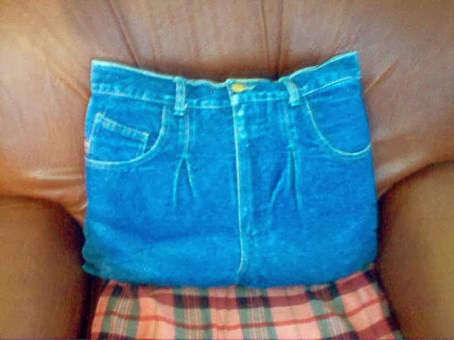 Esta almofada já passeou muito como calças ,agora estão no sofá para dar descanso á cabeça que se deitar nela.