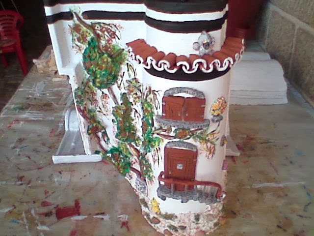 Telha casinha,(todo o trabalho em relevo foi feito em barro e apintura em acrílico).