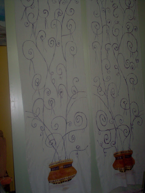 Cortinados de linho pintados à mão