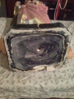 Como podem verificar a sua cabeça ficou praticamente danificada,do modo geral as bonecas de porcelana têm cabeça mão e pés em porcelana e o seu